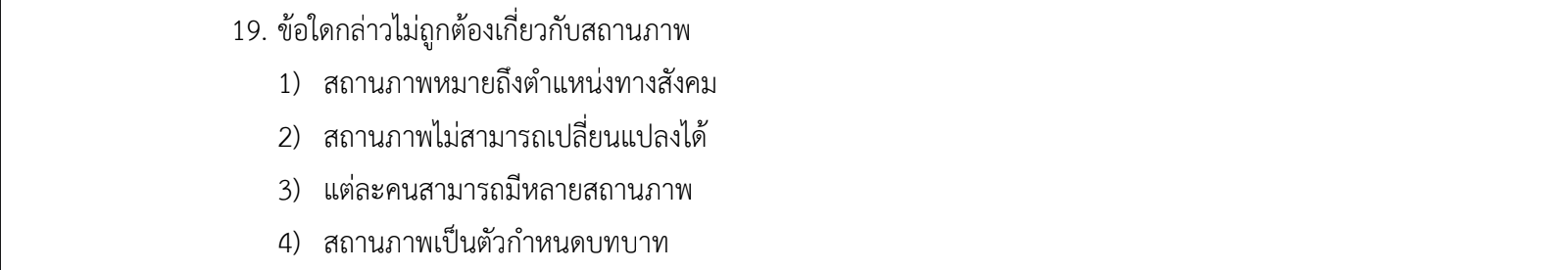 ข้อสอบสาระหน้าที่พลเมือง เรื่อง สังคมวิทยา 20 ข้อ
